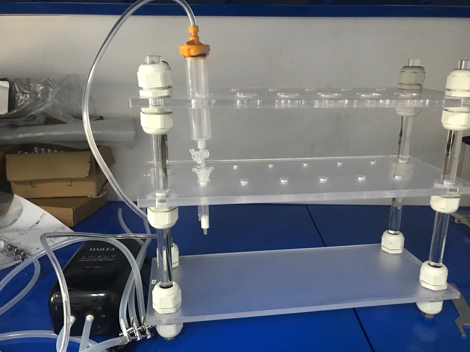 1. 將處理后的溶液上樣,調(diào)節(jié)空氣泵旋鈕以控制總供氣量,調(diào)節(jié)氣體流速調(diào)節(jié)閥門(mén)(必要時(shí)可旋緊節(jié)液體流速調(diào)節(jié)閥鎖定流速),使樣液以1-2滴/秒的速度流出;