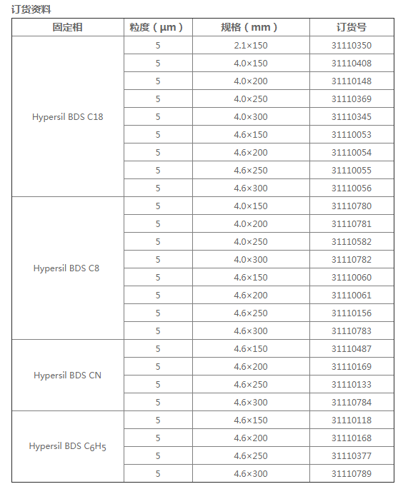 常用Hypersil BDS 填料
