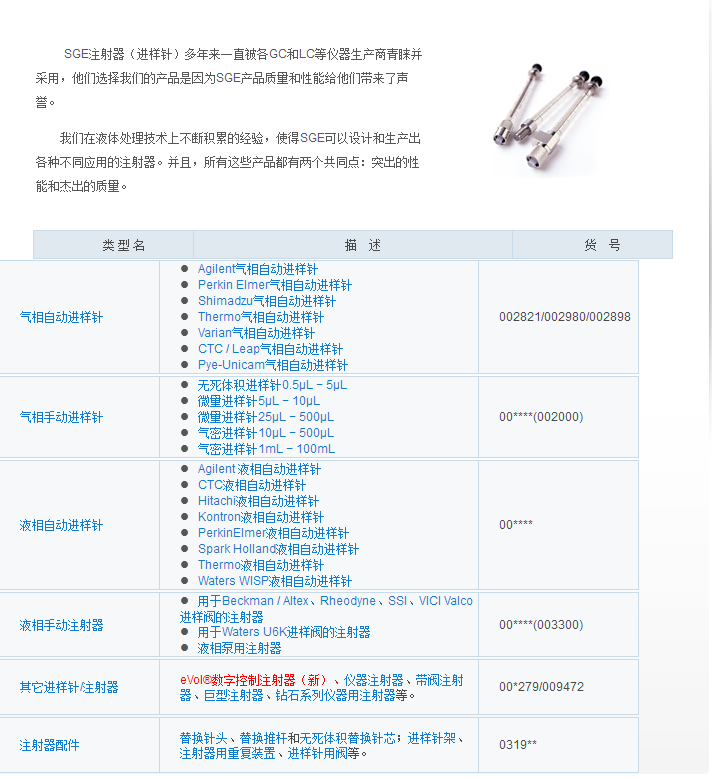 SGE是國(guó)際上注明的進(jìn)樣針生產(chǎn)上,目前世界上一流品牌的進(jìn)樣針均出資SGE代工,同樣產(chǎn)品,價(jià)格有很多,歡迎咨詢。